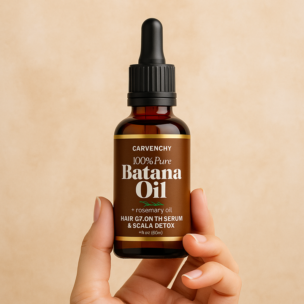 Unser BatanaRose Styling Oil besteht aus rein natürlichem Batana-Öl und hochwertigem Rosmarinextrakt – schonend verarbeitet, um alle Nährstoffe zu bewahren. Die leichte Formel zieht schnell ein, pflegt Haar & Kopfhaut intensiv und hinterlässt kein fettiges Gefühl.