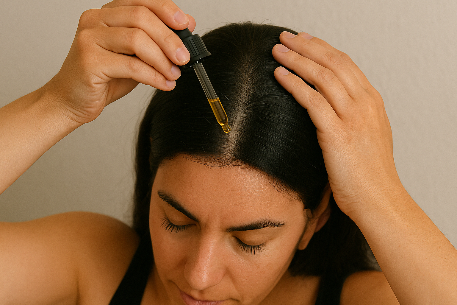 Einfach wenige Tropfen in Haaransatz oder Längen einmassieren – täglich oder nach Bedarf.